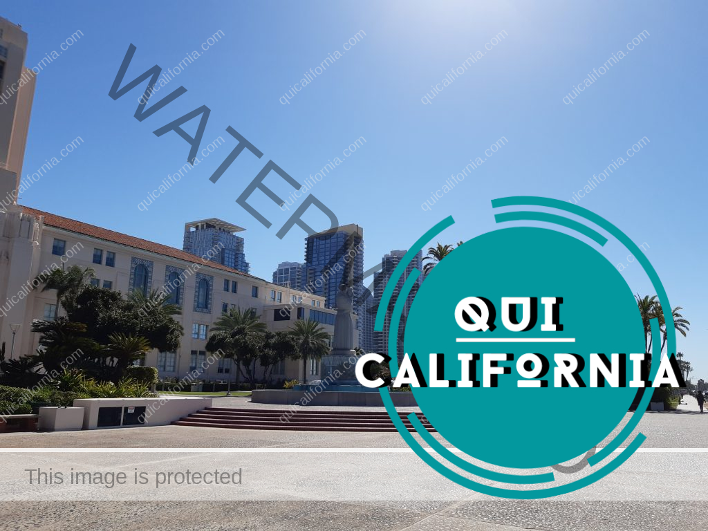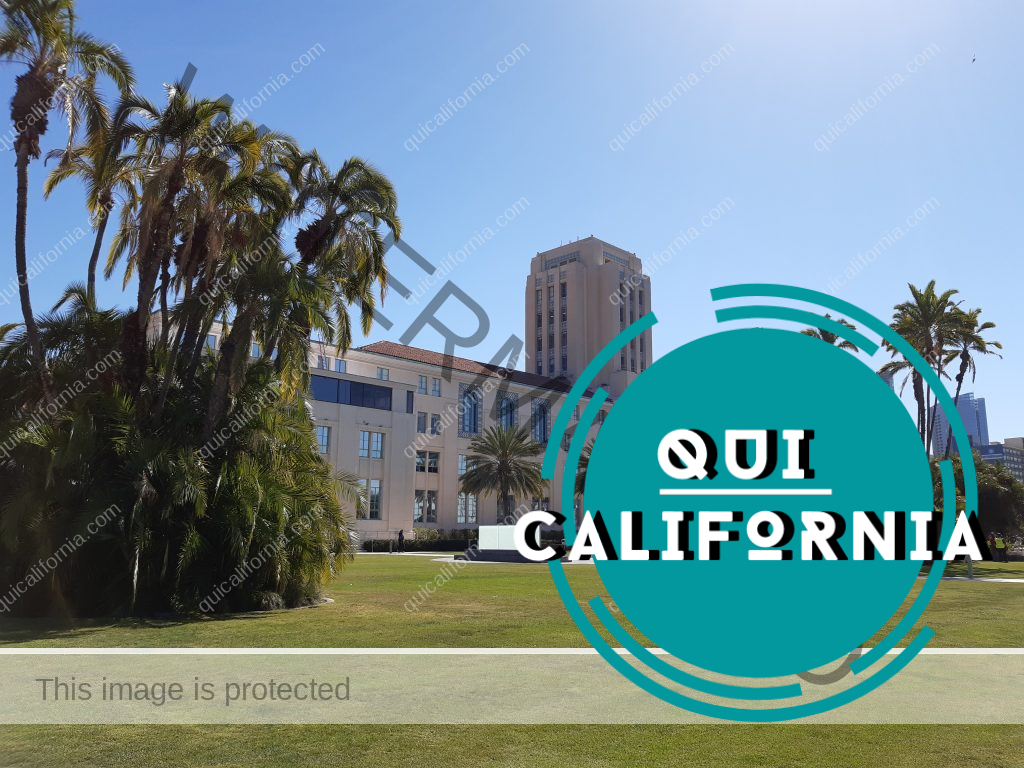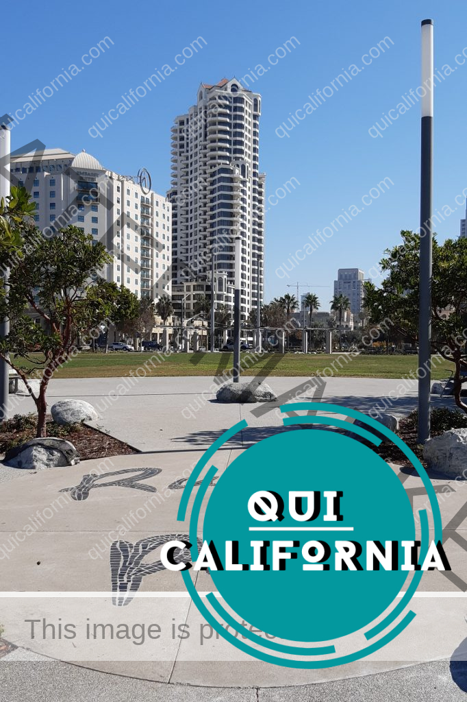 Di fronte a noi il Waterfront Park e l’edificio del municipio di San Diego, circondato da un enorme e bellissimo giardino con installazioni di arte contemporanea, fontane e tanto spazio che viene utilizzato dai Sandiegans per praticare sport, fare pic nic, riunirsi con gli amici, passeggiare e godersi la giornata all’ombra delle palme.